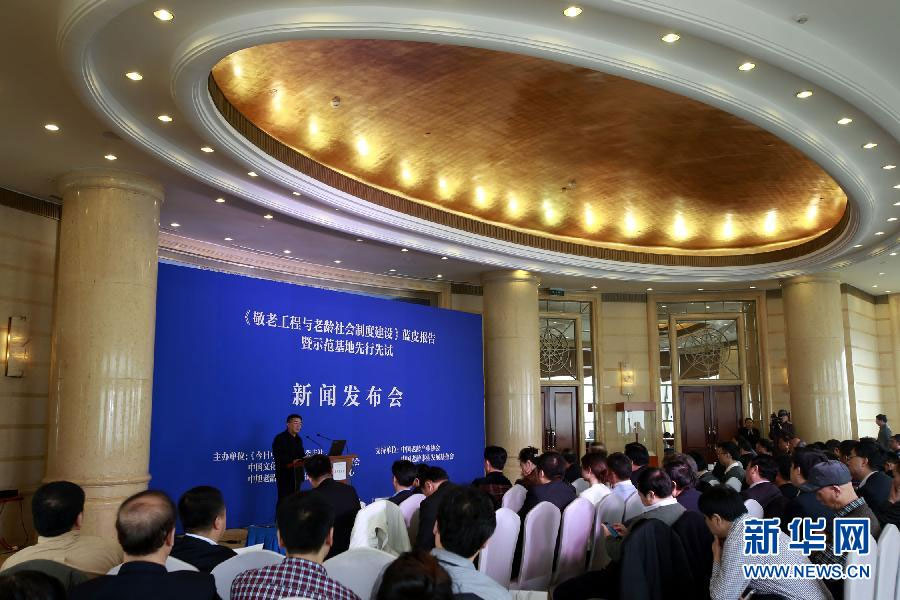 2月26日,《敬老工程与老龄社会制度建设蓝皮报告》暨示范基地先行先试新闻发布会在北京举行。由中国老龄产业协会、中国老龄事业发展基金会和中国文化管理协会老龄文化产业委员会等机构提出的“敬老工程”,涵盖老年人经济保障、健康护理、精神慰藉以及相关老龄社会制度、法规、文化建设等诸多方面。它将通过在全国范围内打造“敬老工程示范基地”,采用“公建民营”方式,通过民间机构对政府支持开办的“敬老工程示范基地”养老服务综合体进行管理和运营,力争实现政府、社会和民间机构三方共赢。新华社记者 李明放摄