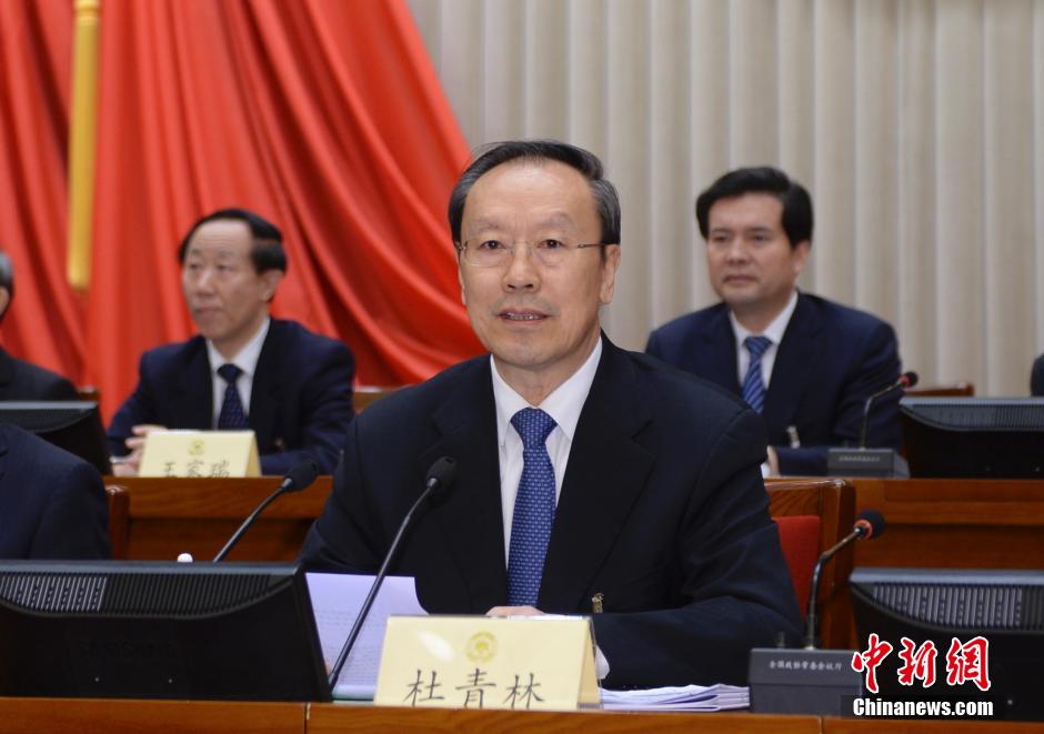 2月28日,全国政协十二届全国委员会常务委员会第四次会议在北京闭幕。全国政协副主席杜青林主持会议。中新社发 廖攀 摄
