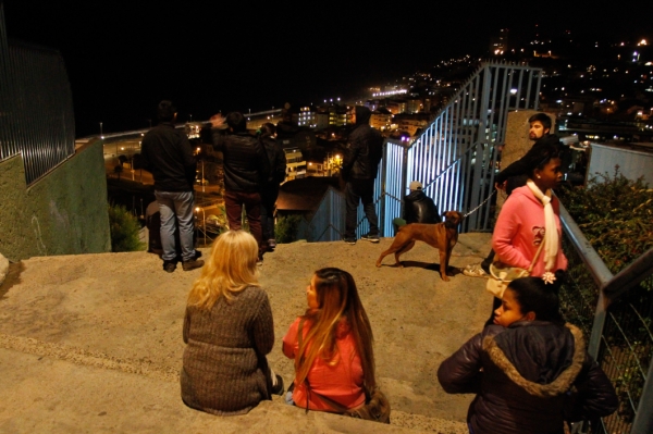 当地时间4月1日,在智利比尼亚德尔马,人们在地震后聚集在房屋外面。