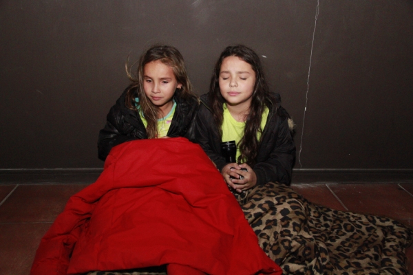 当地时间4月1日,在智利伊基克,两名女孩在地震后坐在地上休息。