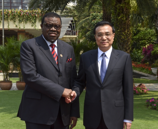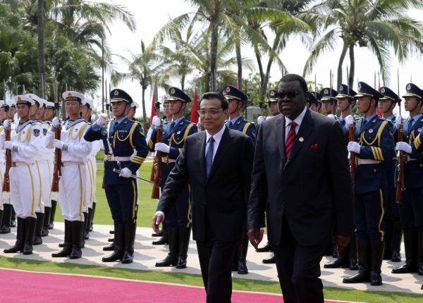4月9日,国务院总理李克强在海南省三亚市同纳米比亚总理根哥布举行会谈。这是会谈前,李克强为根哥布访华举行欢迎仪式。
