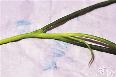 18日,东城区的一位市民在望京一处市场买了葱后,回家发现上面有些蓝色,用纸巾一擦,纸上也都是蓝色痕迹。“是被染色了吗?”市民不免疑惑,并觉得这种颜色很像硫酸铜的颜色。