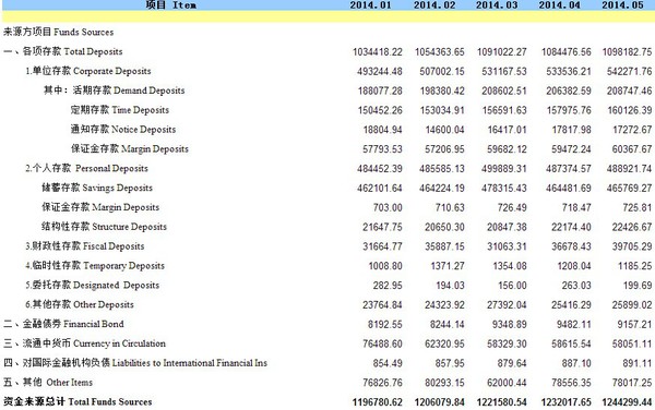 新华网消息 中国人民银行网站16日消息,根据2014年金融机构人民币信贷收支表,中国5月外汇占款为295407.78亿元,环比增加386.65亿元,增幅较4月大幅下降66.93%。