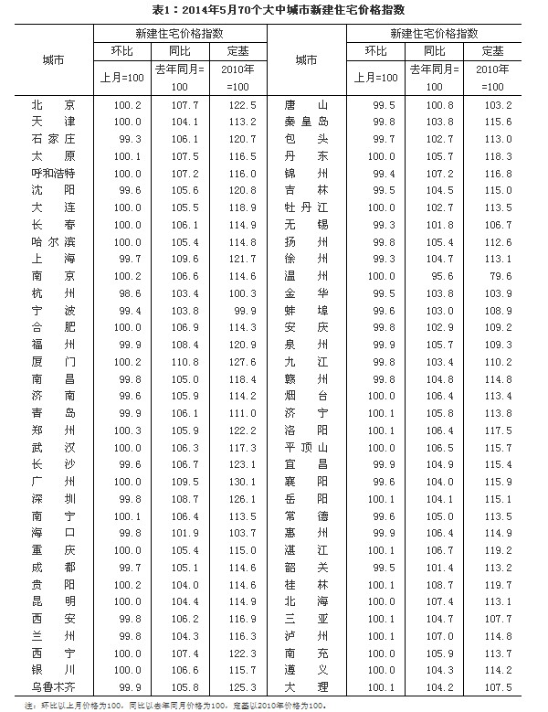 国家统计局今日公布5月70个大中城市住宅销售价格报告。数据显示,与上月相比,70个大中城市中,价格下降的城市有35个,持平的城市有20个,上涨的城市有15个。与去年同月相比,70个大中城市中,价格下降的城市有1个,上涨的城市有69个。
