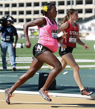 美国田径女运动员阿莉西娅·蒙塔诺日前在美国田径锦标赛上怀着34周的胎儿,以2分32秒13完成800米初赛。