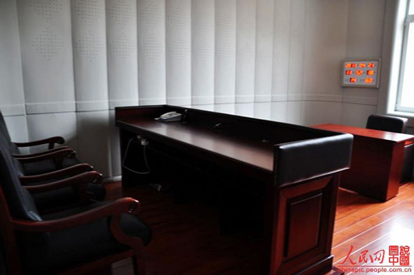 对面的矮座席是贪官的座位,不管你过去是多么辉煌位子有多高,一旦被请到这里来位子的高度是一样的。