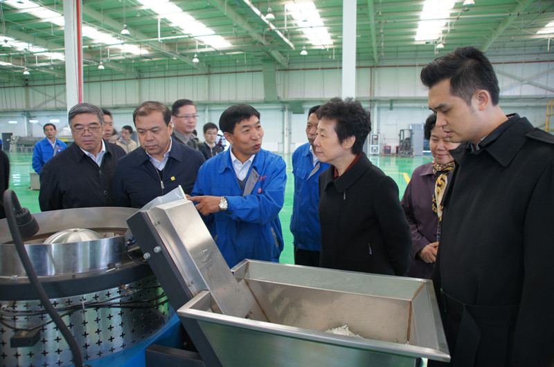10月11日至13日,全国人大常委会副委员长、民进中央主席严隽琪率调研组在甘肃就节水农业及新丝绸之路经济带建设考察调研。全国政协副秘书长、民进中央副主席朱永新,甘肃省人大常委会副主任马青林,全国政协常委、民进甘肃省委会主委尚勋武,全国人大常委、民进中央人口资源环境委员会主任、中科院科技政策与管理科学研究所所长王毅,民进中央参政议政部部长陈鸣参加调研。图为严隽琪深入兰州新区亚盛亚美特节水灌溉有限公司考察节水灌溉系统及其零部件和配套设备的生产情况