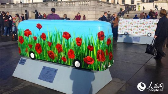 伦敦展示公交车雕塑 庆祝公交车之年(摄影:白天行)