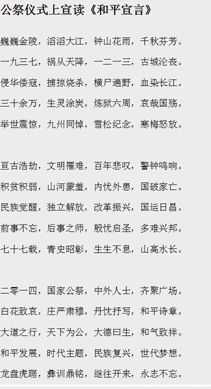 关键词:77名青少年 南京大屠杀 国家公祭仪式 和平宣言
