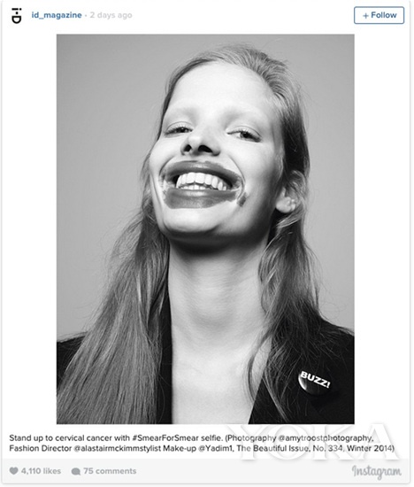 经常在使用Instagram的读者可能会发现继“冰桶挑战”( Ice Bucket Challenge)之后,最近Instagram上又吹起了一阵弄糊口红的风潮,这可不是时尚彩妆界的盛事而是一项由英国Jo’s Cancer Trust组织发起的#SmearforSmear社交活动,目的是希望藉由子宫颈癌意识月提高妇女对子宫颈癌的认识。