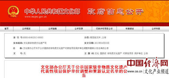文化部调整和重新认定国家级非遗代表性项目保护单位