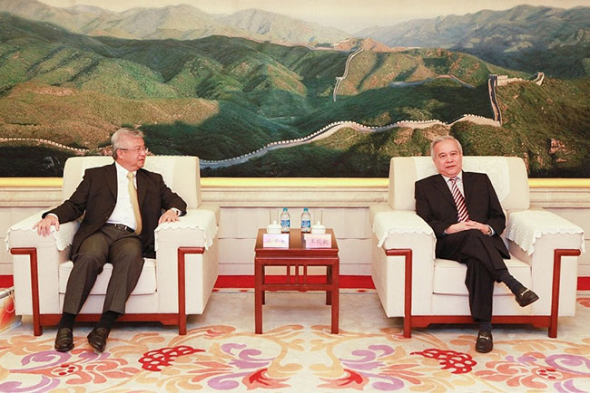 2015年7月8日上午,全国政协副主席、全国工商联主席王钦敏在机关会见了新加坡中华总商会会长蔡其生先生和前任会长张松生先生,双方就两会间合作及世界华商大会有关事宜进行了商讨。
