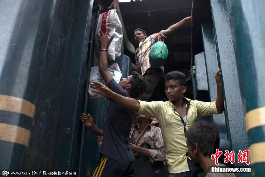 孟加拉民众挤车回家过开斋节 人潮爆满场面壮观