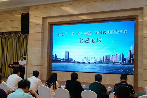 7月10日至11日,“推动‘一带一路’建设,加快我国沿边开放”论坛及民建中央经济委员会全体会议在云南省德宏傣族景颇族自治州芒市举行。