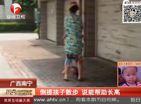 近日,广西南宁有人爆料称,一名老太太把自己不到两岁大的孙女倒提着散步,小女孩不停哭喊,被救下来时几乎昏厥。对于路人的劝阻老太太感到非常生气,称这样是为了让孩子长高。