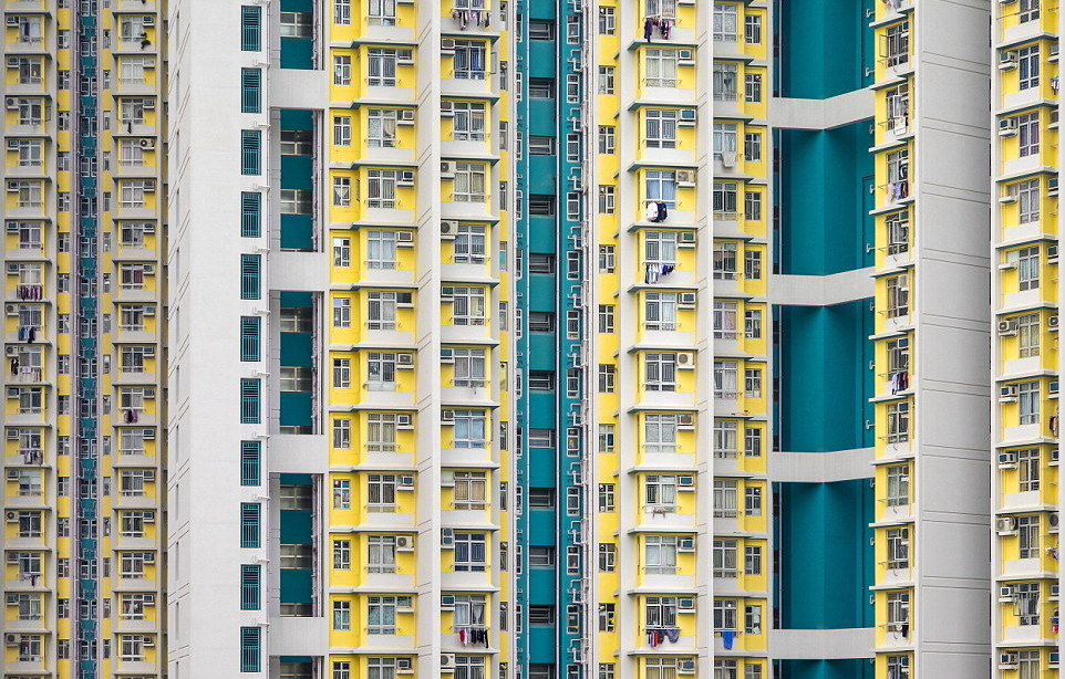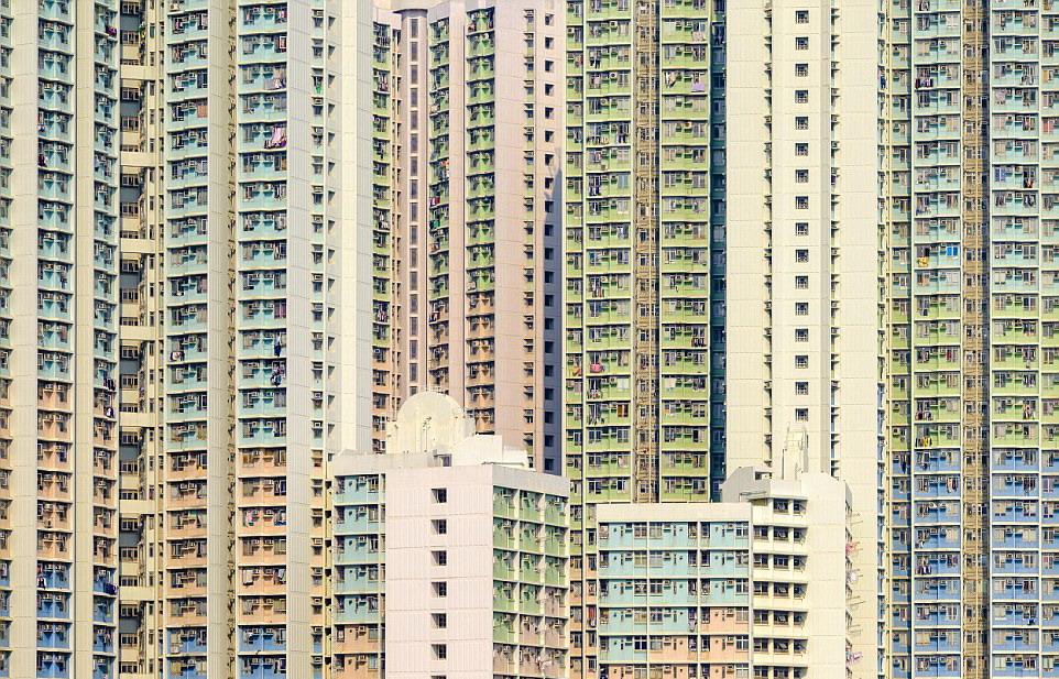 这些塔楼似乎在向空中无尽延伸,再加上随机出现的颜色图案,几乎像抽象艺术那样让人产生催眠效应。尽管这些塔楼看起来给人一种超现实的感觉,但它们却是香港成千上万居民的家园。香港有700多万居民,只能充分利用垂直空间才能容纳如此多的人口。