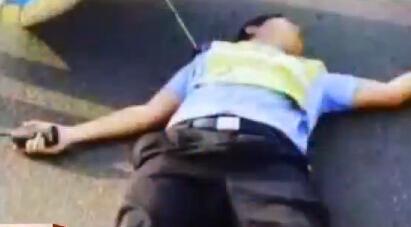 看到这一场景,正在路面上执勤的那名民警符圣和就冲到了电动车的前方想要拦截,之后就发生了他被推倒的一幕。