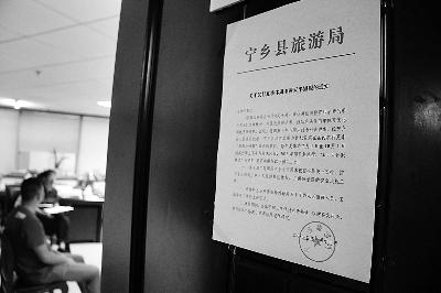 8月13日早晨,记者来到位于该县行政中心5楼的宁乡县旅游局时,看到大门上贴了一份通知。
