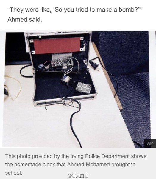 穆斯林中学生自制的像炸弹的闹钟。