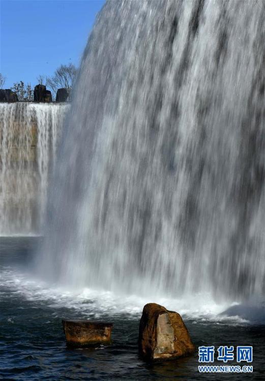 公园的瀑布景观区充分利用牛栏江引水入滇工程而形成人工瀑布及湖泊,其利用约12.5米的地势高差,建设成宽幅约400米的人工瀑布。新华社记者 蔺以光 摄 图片来源:新华网