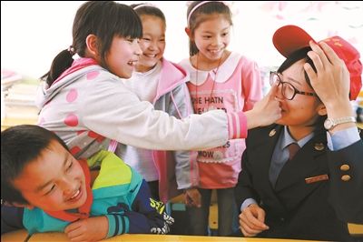 4月18日,湖北省竹山县国家税务局青年志愿者陪留守儿童玩游戏。针对留守儿童管理难题,该局实施“爱心妈妈”关爱留守儿童结对帮扶温暖工程,让“爱心妈妈”成为留守儿童思想品德的辅导员、情感交流的沟通员。