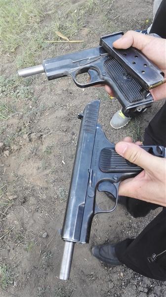 在两名疑犯身上,共搜出了两把仿五四手枪,4个弹夹,31发子弹。