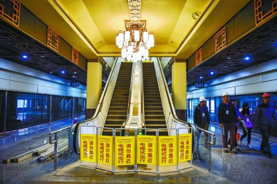 出入口,水泥色调配上透明玻璃,不再有包得严严实实的墙板;300多米长的车站,立柱林立两侧,黄色漆喷涂在上面,能摸到混凝土的颗粒;大吊灯垂下,温暖的灯光照着四米多高的空间格外空旷……北清路上的永丰站,是16号线装修进展最快的车站。项目总工郑巍是北京人,站在巨大的吊灯下频频感叹:“这不就是我们打小去的1号线地铁站嘛!”