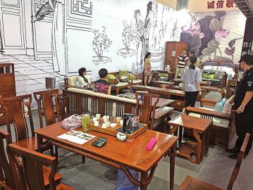 艺博会品牌红木备受消费者关注。(刘建 摄)