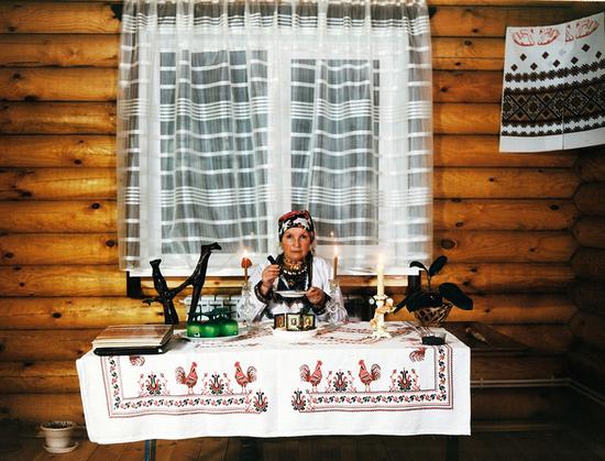 据悉,这些图片的拍摄地为莫斯科和乌拉尔之间神圣的树林深处,是芬兰乌戈尔族马里人几世纪以来的居住地。桑岛先生说尽管在俄国的扩张及苏维埃时期大多数马里人都信仰基督教,一些当地人仍旧练习异教徒的传统习俗如“白色和黑色魔法”。