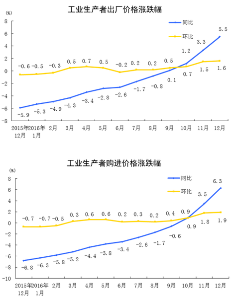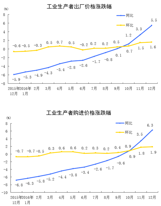 统计局:12月份PPI涨幅扩大 2016全年PPI同比降1.4%