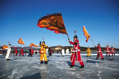 贺然举例,颐和园、北海等皇家冰场同时设有冰上速滑、传统冰车、冰上自行车等“老北京”传统冰上活动。
