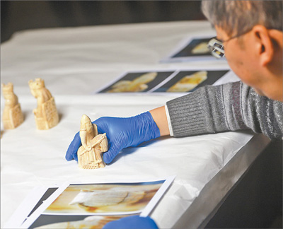 工作人员清点刘易斯棋子。
