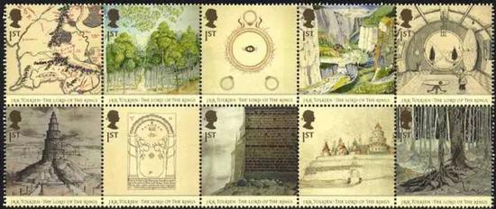 2004年,英国发行了《指环王》三部曲中《护戒使者》与《双塔奇兵》出版50周年的纪念邮票。