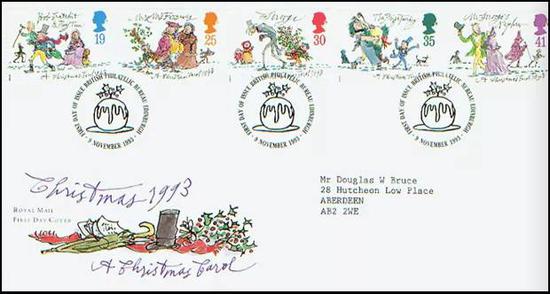 1993年,英国发行了查尔斯·狄更斯《圣诞颂歌》创作150周年的纪念邮票。