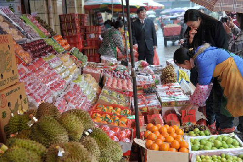 资料图片:广西南宁市最大的果蔬批发市场。