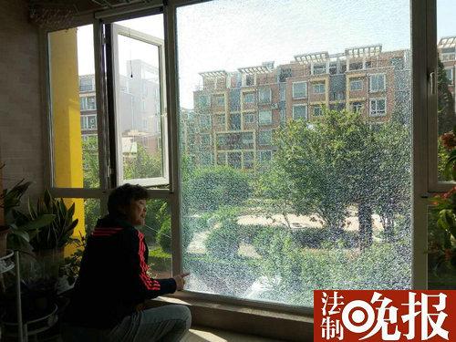张女士说,上次被袭击后,她专门花了5000多元更换结实的玻璃,没想到还是出现这种情况。(法晚微信ID:fzwb_52165216)