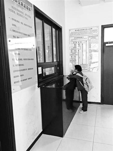 北青报记者身高1.7米多,在窗口处试了试,发现如果站直了,脸正对着的是窗口上面的那块无法打开的玻璃,和里面的人这样说话会感到不方便,也看不到对方的表情,如果要对着那两个能拉开的小窗口和里面的人交流,要么站直了把脖子向下低几十度,要么直接弯下腰趴在台子上,只有这样才能对着小窗口说话。
