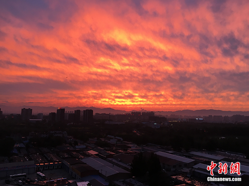 红透半边天!北京大雨过后现醉人晚霞