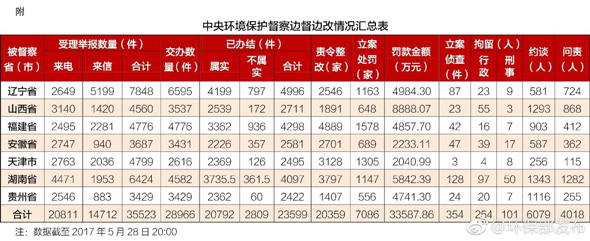 据统计,截至2017年5月28日20:00,共计受理举报35523个(其中,来电举报20811个,来信举报14712个)。