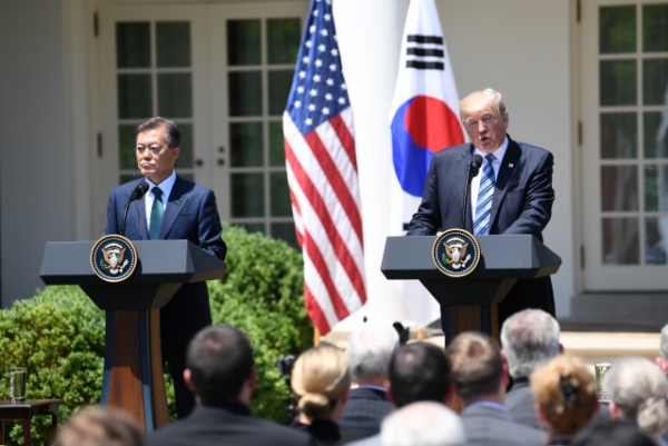 美国总统特朗普与到访的韩国总统文在寅6月30日在白宫举行会晤,讨论安全和贸易等问题。特朗普强调,美韩应公平分担安全防务费用,双边贸易关系应公平和互惠。