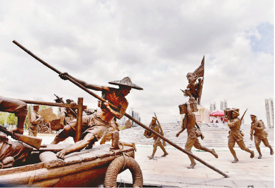 据了解,南昌建军雕塑广场工程项目总占地面积约16000平方米,总投资约9500万元。广场按照“3+6”框架构建,其中东西轴上有《牛行集结》 《挥师渡江》 《军旗升起》 3座雕塑,南北方位有《星火燎原》 《抗战先锋》《解放全国》 《钢铁长城》 《精兵之路》 《强军兴军》 6座雕塑。整个雕塑群用写实雕塑的艺术表现形式,铭记人民军队发展历史。(来源:中国艺术报)
