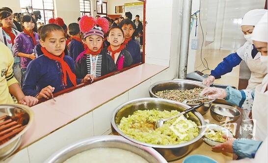 一大早上学不吃早餐,中午吃点自带干粮。过去,云南省很多地方农村的学生就是这样踏上求学路。如今,全省129个县市区479.4万农村义务教育阶段学生吃上了营养午餐。
