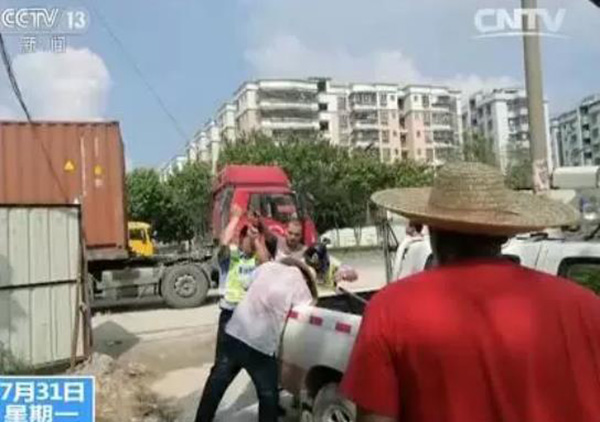 民警果断采取应对办法,用一根2米多长的长棍将光缆的一端顶起,但另一端仍垂在路上,车辆无法顺利通行。