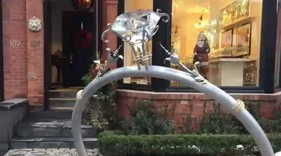 据悉,自从2016年开幕以来商家特地将该雕塑摆放在门口,以吸引更多的顾客。附近住户对该雕像的被盗也表示十分震惊,由于雕像由水晶制成,所以住户们都把这枚钻戒当成大型“路灯”来使用。。。