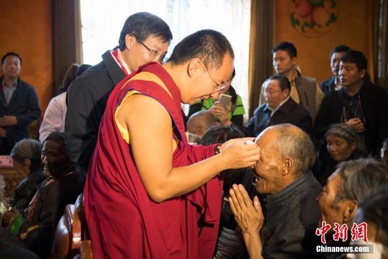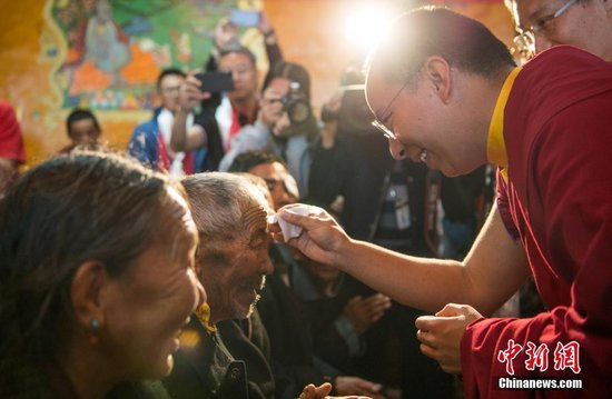 班禅为术后的白内障患者揭纱布。 中新社记者 何蓬磊 摄