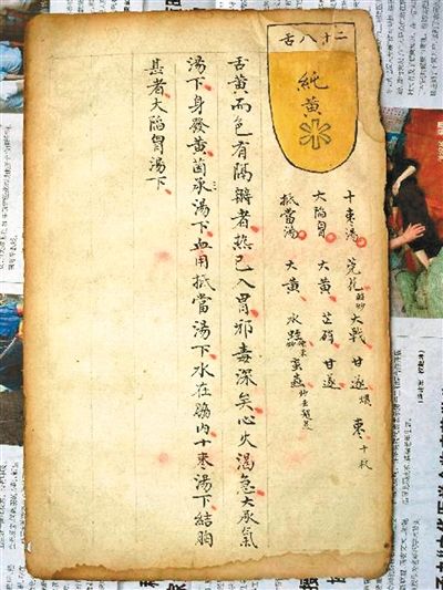 个别“舌头”无诗,但仍配有疗法,如“二十八舌,纯黄。色黄而有隔瓣者,热已入胃,邪毒深矣。心火渴急,大承气汤下;身发黄,茵承汤下;血用抵当汤下;水在胁内,十枣汤下;结胸甚者,大陷胸汤下”,此外,文中还配有“十枣汤”的药方一副,比较晦涩难懂。