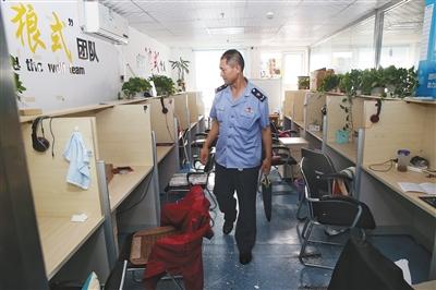 执法人员叫来物业打开公司大门后,发现过道两旁的十余个办公室大门紧锁,十分安静。8月下旬新京报记者在此卧底调查时,这些办公室每天几乎坐满了话务员,给脑瘫患者家属打电话进行话术洗脑。