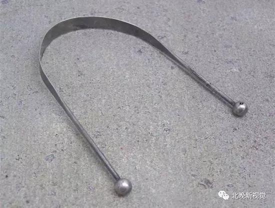 鞋拔子,铜制或骨制,弧形,用于穿鞋用。