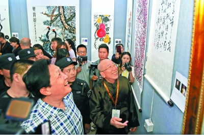 著名演员唐国强、雷恪生也来到书画展现场,观摩同行作品。