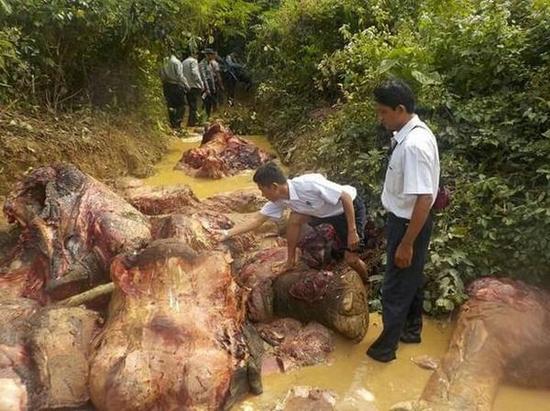 据英国《镜报》报道,近日,英国环境大臣迈克尔·戈夫(Michael Gove)刚颁布了英国贩售象牙的禁令,随后就出现了亚洲象正面临的新的灭顶之灾。这次被索取的不再是象牙,而是象皮,所以即使亚洲无牙的母象也成为受害者。调查人员一天内在一片森林里接连发现了20具大象的尸体,它们均被毒箭射杀,象皮也多被剥去了。